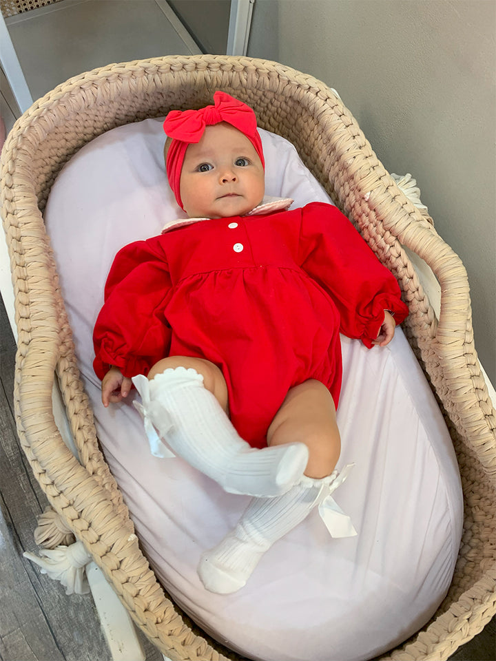 Este encantador mameluco de manga larga está diseñado para brindar comodidad y estilo en una sola prenda. Confeccionado en una mezcla de 95% algodón y 5% spandex, ofrece una textura suave y ligeramente elástica, ideal para acompañar el movimiento natural del bebé sin restricciones.